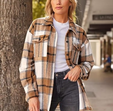 Get cozy and stylish this season with the AUTOMET Women’s Fall Shacket. This flannel plaid button down shirt jacket is perfect for layering over tees, tanks, or hoodies. With its relaxed fit and long sleeves, it’s the ultimate fall outfit essential for pumpkin patches, coffee runs, and casual weekends. Pair with jeans, leggings, or boots for an effortless look.